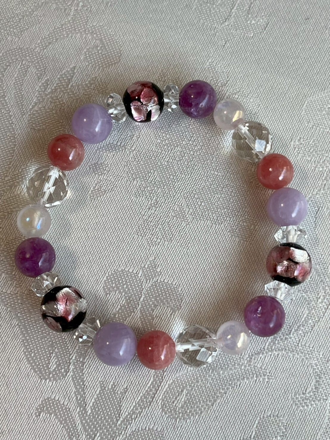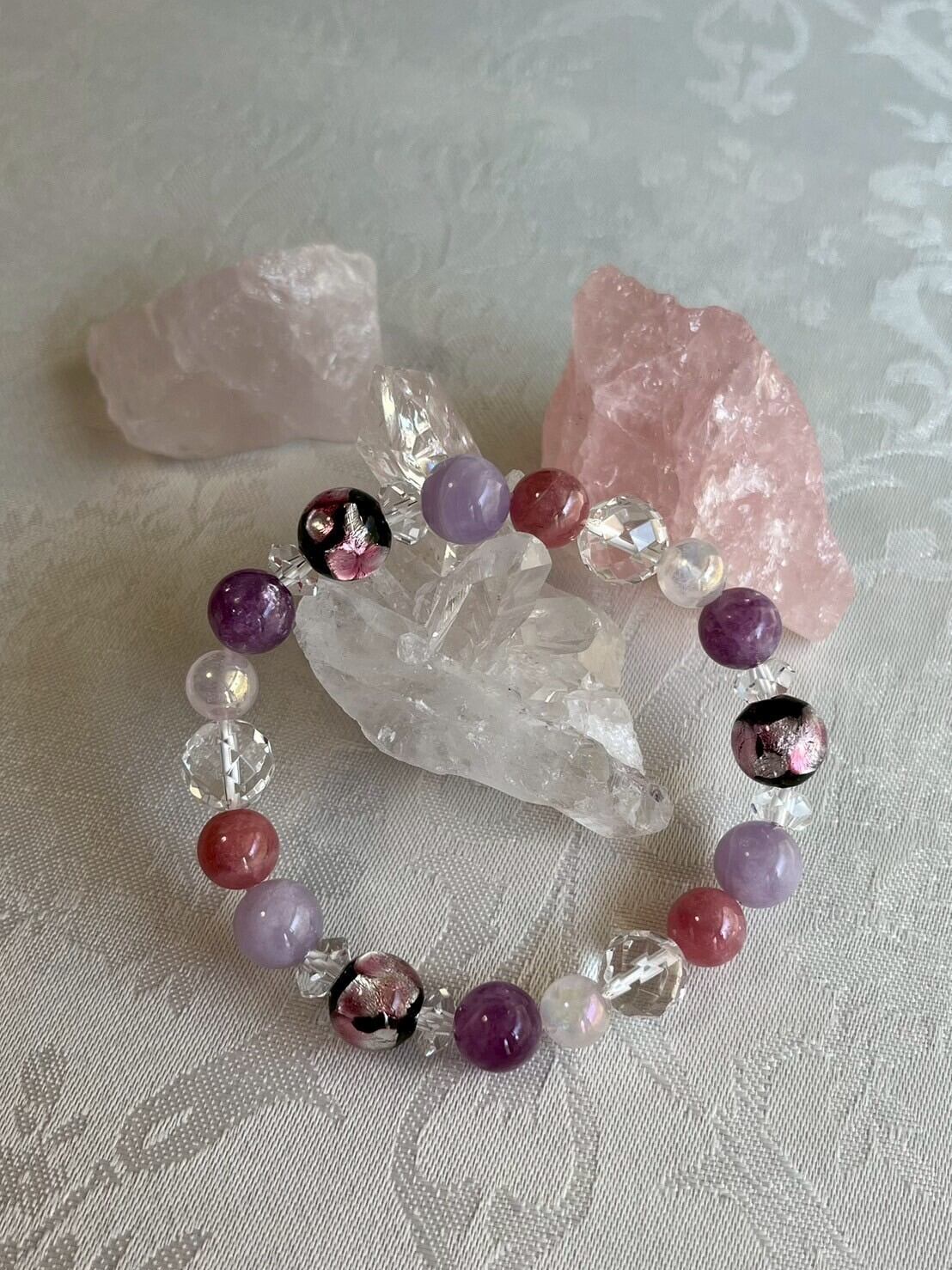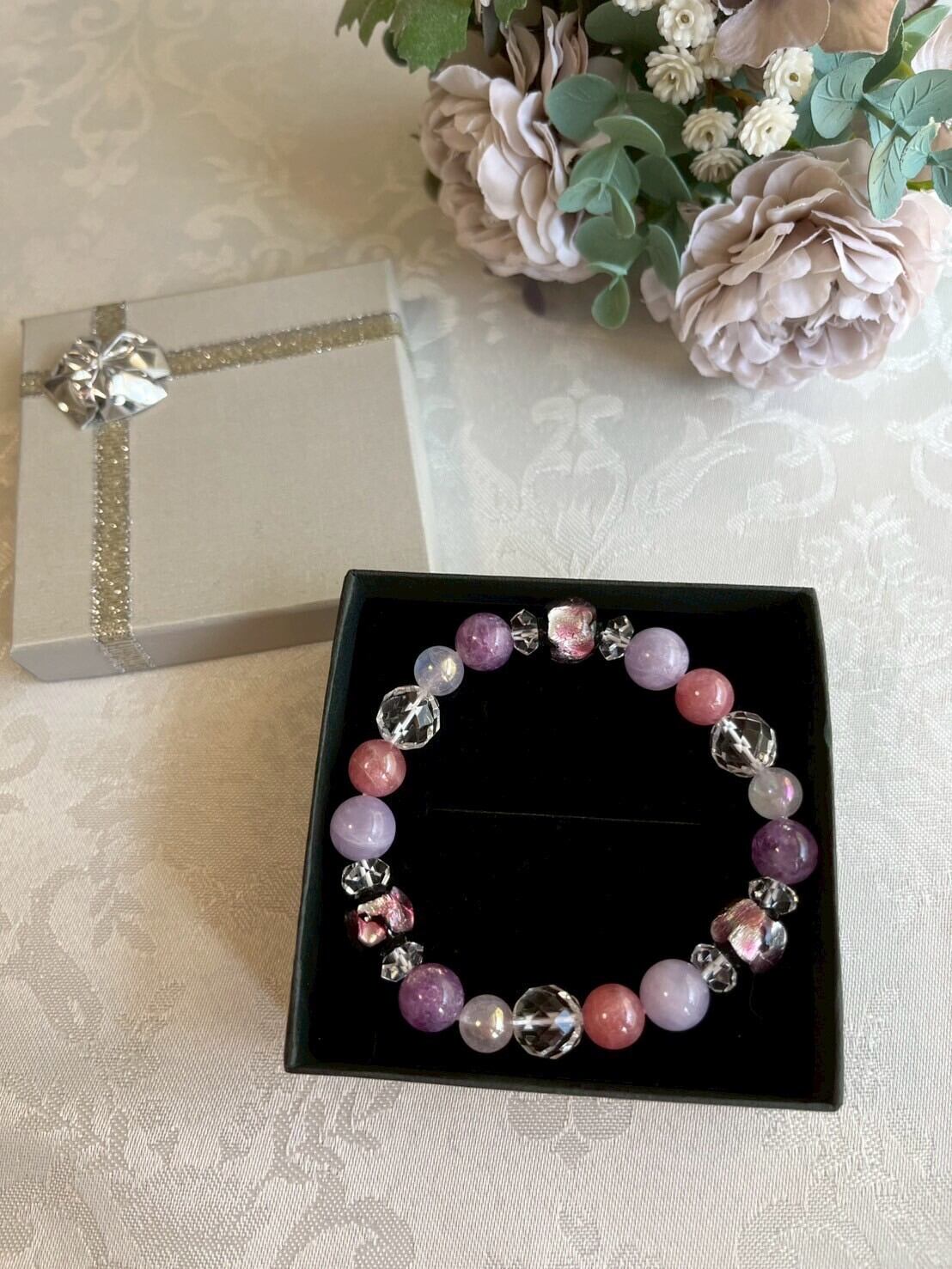 インカローズは、新たな恋愛を引き寄せる力があり、運命の人と出会いたい方や恋を実らせたい方、 ご結婚へと導く出逢い、特にソウルメイトとの出逢いを促進します。アメジストは、誠実で真実の愛を導きます。