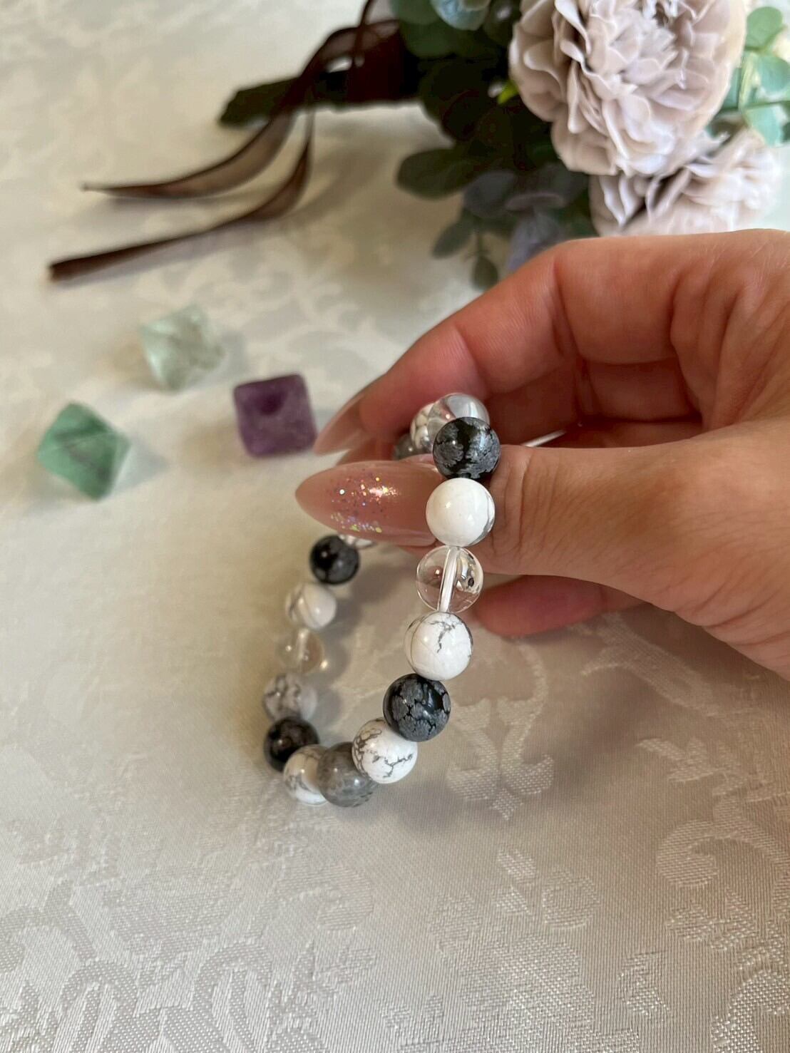 ハイライト・フォーティフィケーション・スノフレークオブシディアン・水晶