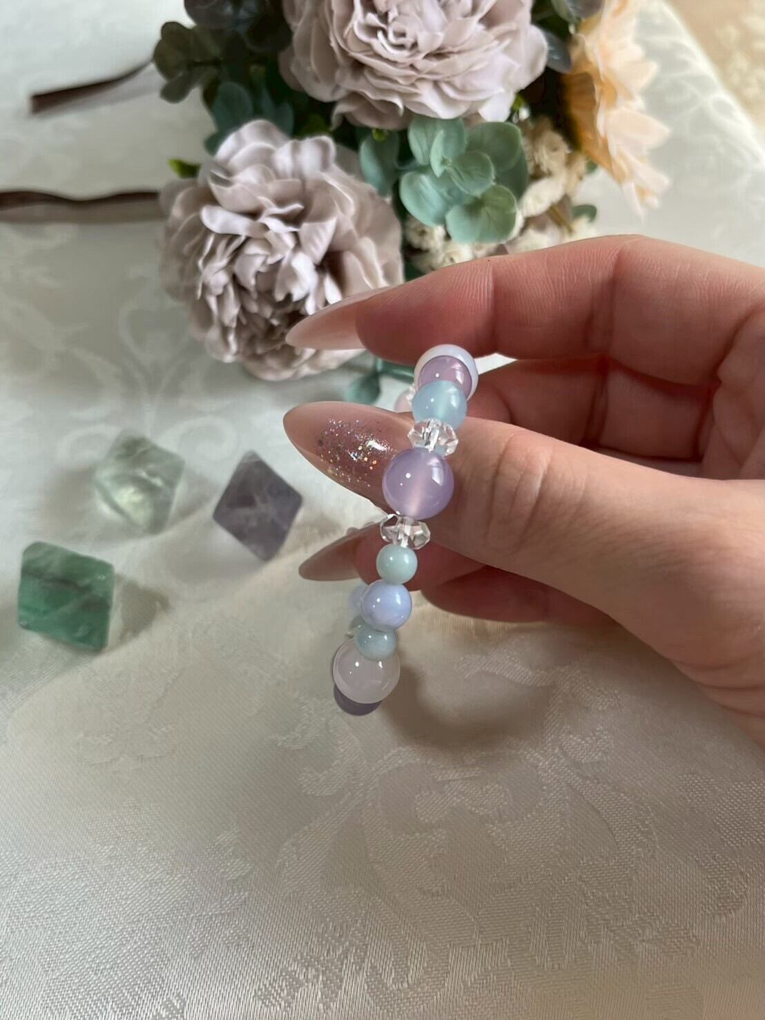 ラベンダーカルセドニー・シーブルーカルセドニー・ホワイトカルセドニー・アマゾナイト・水晶